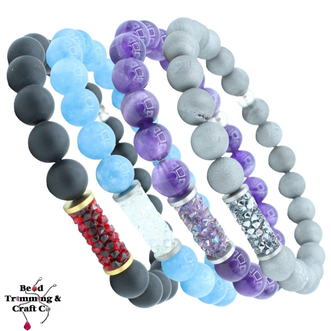 8mm Gemstone Beads. Featuring Swarovski Crystal Fine Rocks Tube.