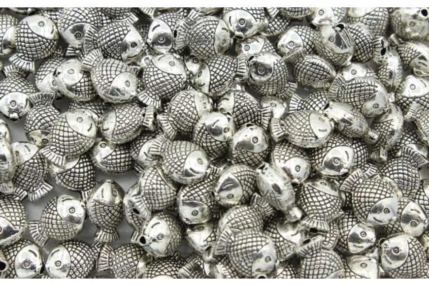 Fish – 11 x 8mm – Antique Silver. Quality product. Metal Bead. Plated.