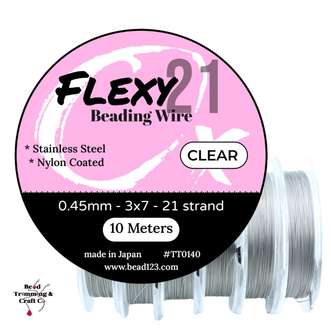 Flexy Beading Wire – 21 Strand – 0.45mm – 10mtrs – Clear.