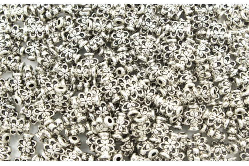 Floral Barrel Shape – 8mm – Antique Silver. Quality product. Metal Bead.