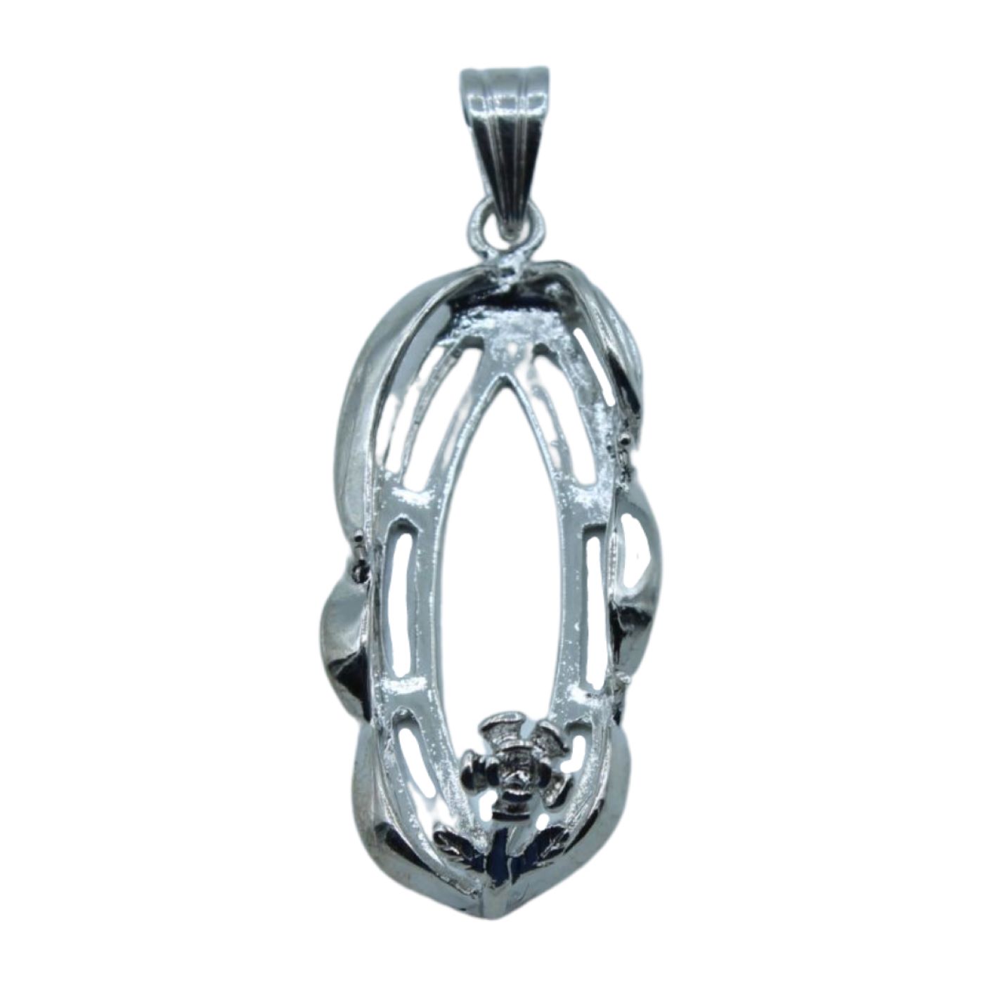 Floral Pendant Mount – 35mm – Antique Silver. Nickel Free. 35 x 12mm size excludes loop. Takes 30mm oval stone / crystal.