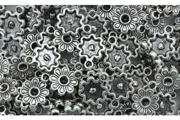 Flower – 14 x 10mm – Antique Silver. Quality product. Metal Charm. Nickel Free. Plated.