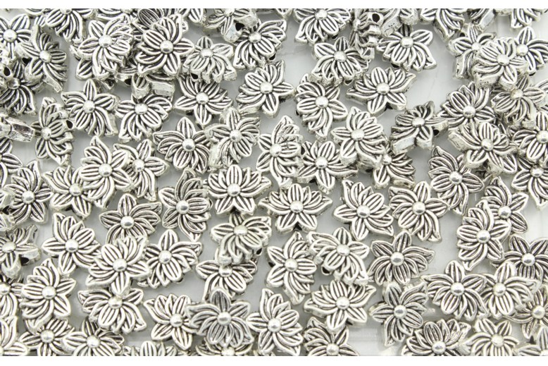 Flower Bead – 12 x 8mm – Antique Silver. Quality product. Metal Bead. Plated.