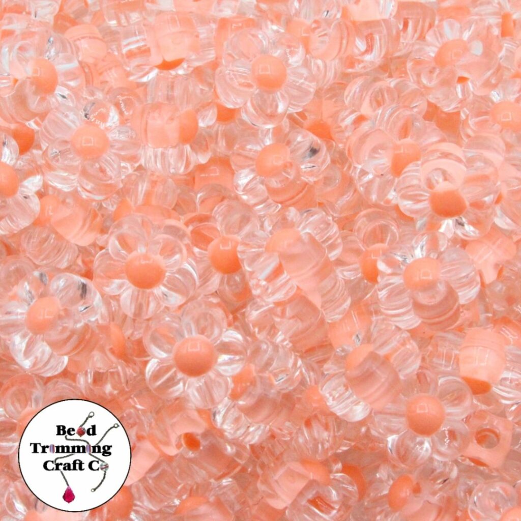 Flower Bead – Colourlined – 12mm – Clear / Apricot.