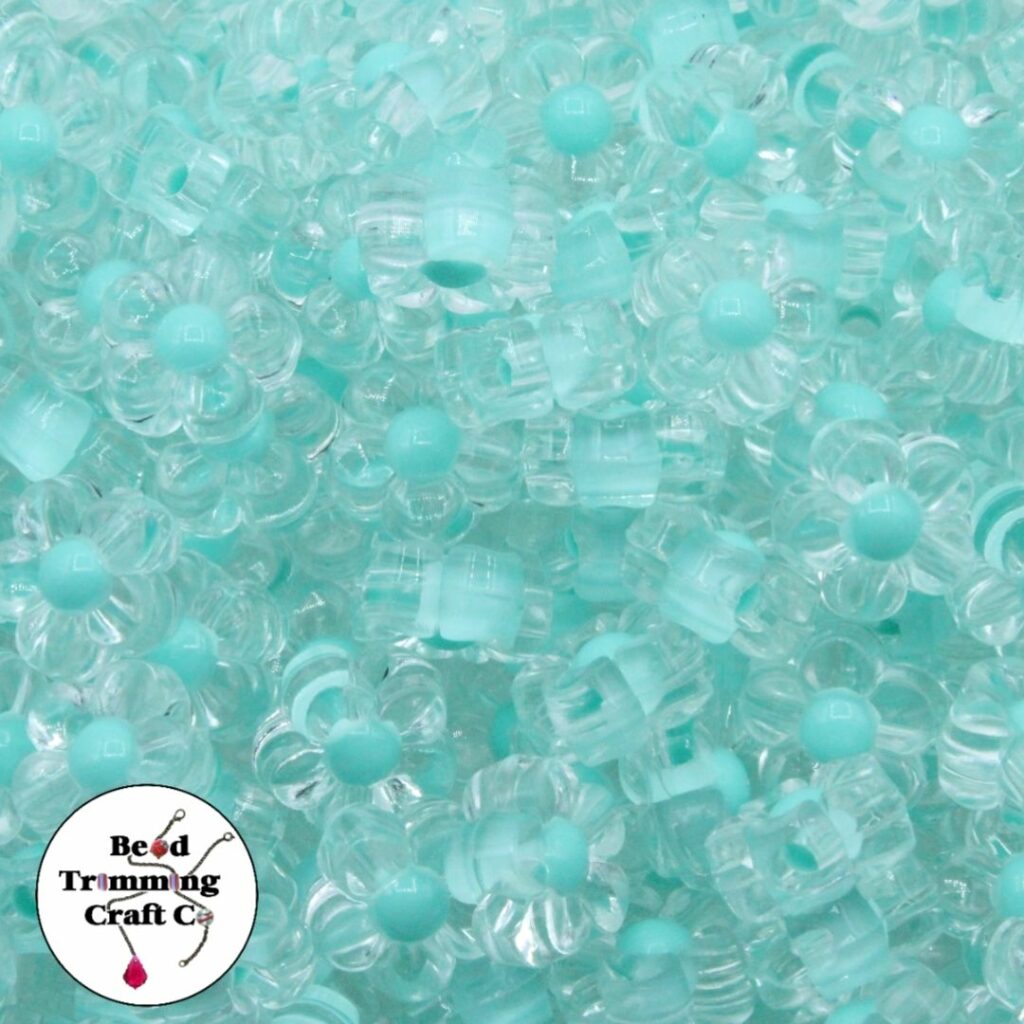 Flower Bead – Colourlined – 12mm – Clear / Teale