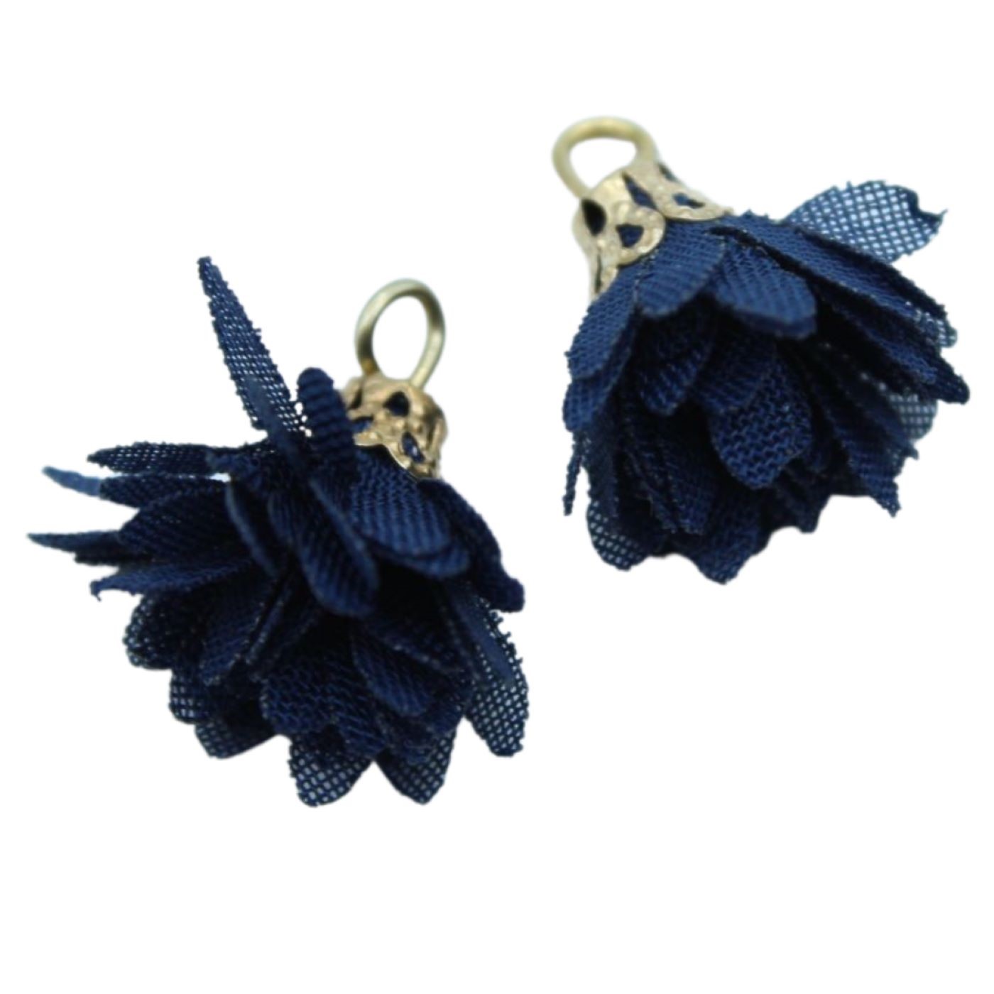 Flower Bud – 15mm – Navy. Antique gold coloured mount.