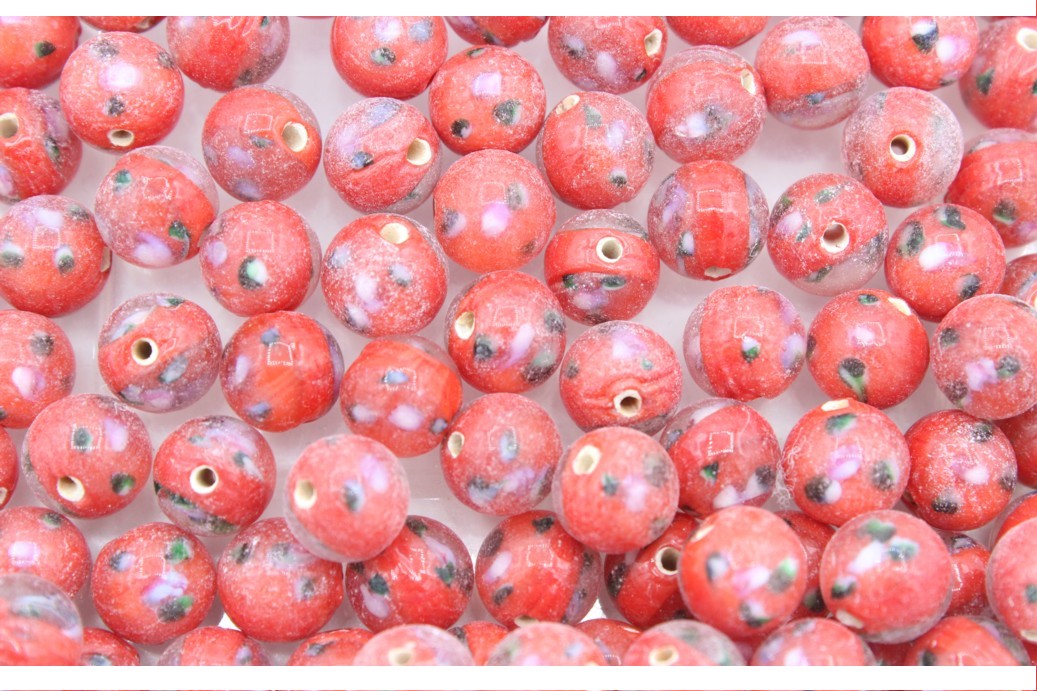 Flower Pattern – 6mm – Red. Glass Bead. Made in India.