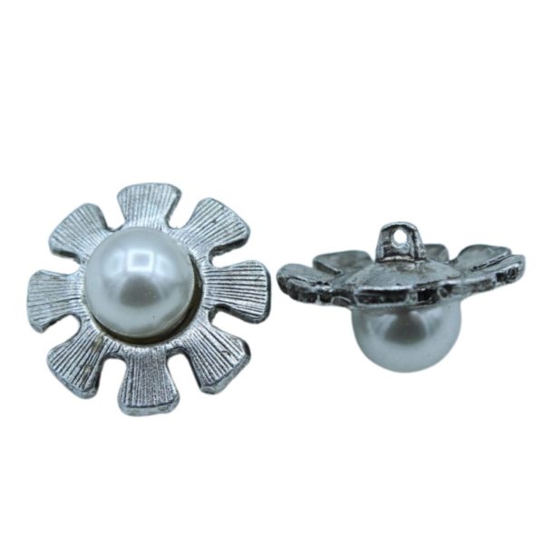Flower / Pearl Button – 18mm – Antique Silver. Metal.