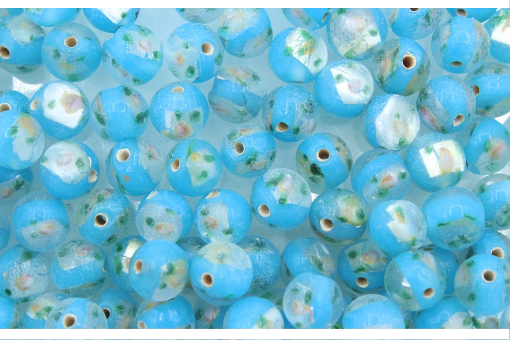 Foil / Pattern – 8mm – Blue. Glass Bead. Made in India.