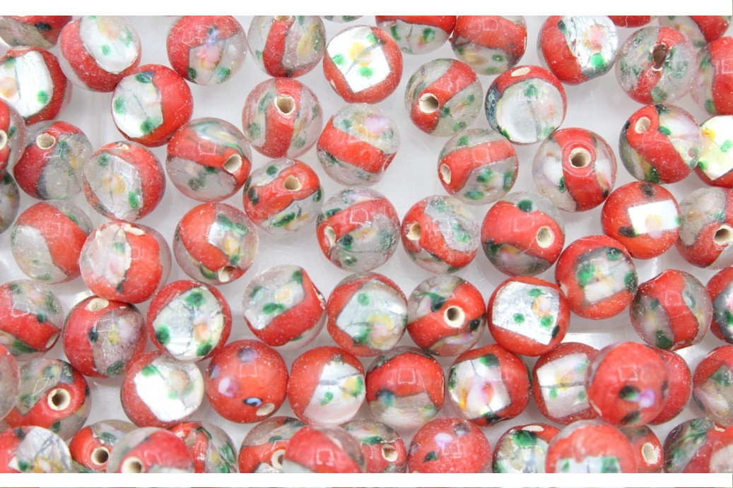 Foil / Pattern – 8mm – Red. Glass Bead. Made in India.