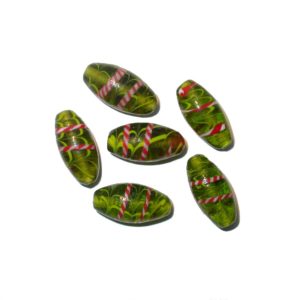 Foiled Outer Flat Oval – 18mm. Glass bead. Approx 16 – 18mm oval size. Foil is on outer layer of bead.