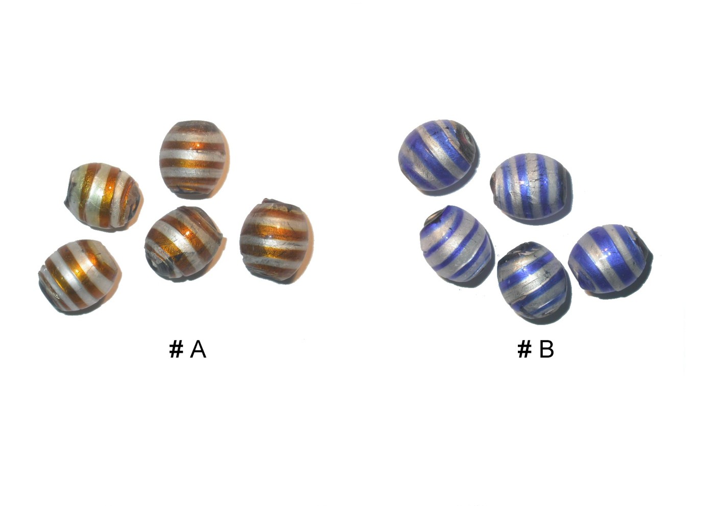 Foiled Outer Oval – 18mm – Assorted Colours. Glass bead. Approx 16 – 18mm oval size. Foil is on outer layer of bead. Can mix colours to obatin quantity discount.