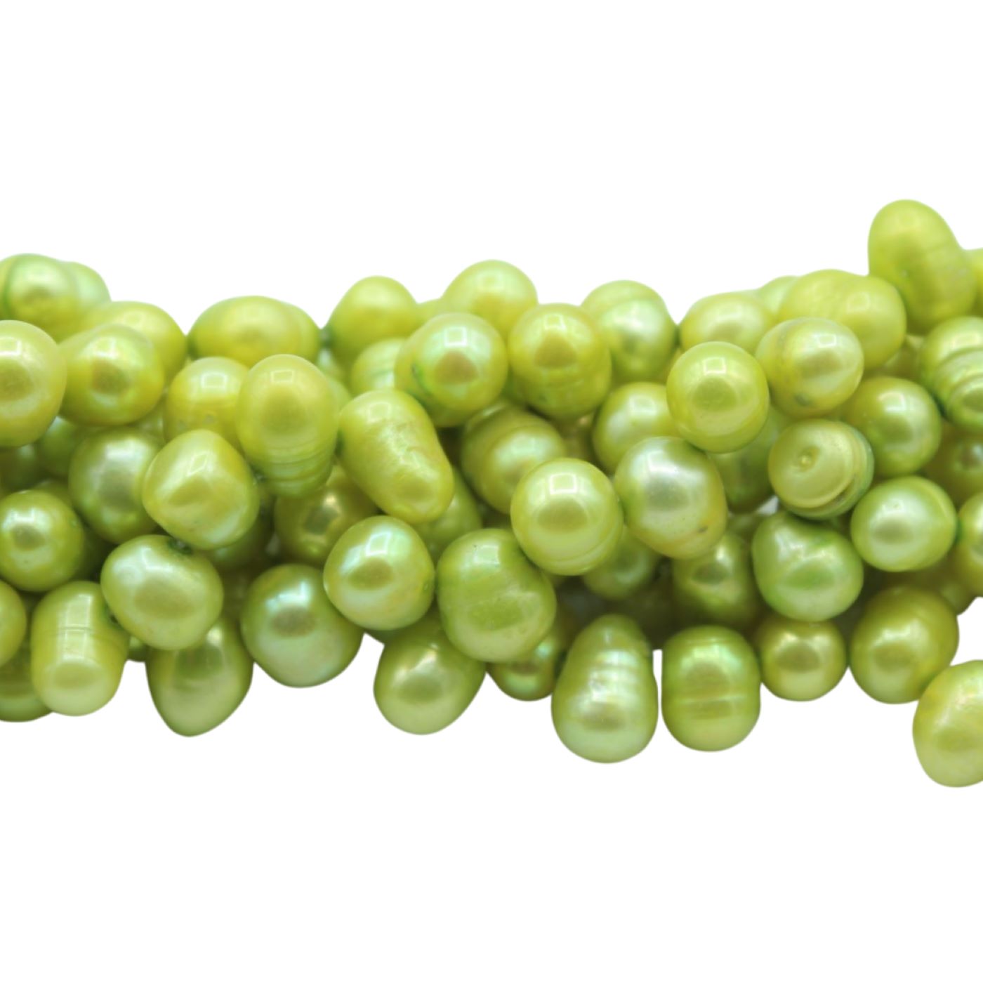 Freshwater Pearl – Potato – 8 – 10mm – 37cm Strand – Green. Dyed Freshwater Pearl. Side drilled. Aprrox Size 8×6 – 10 x8mm.