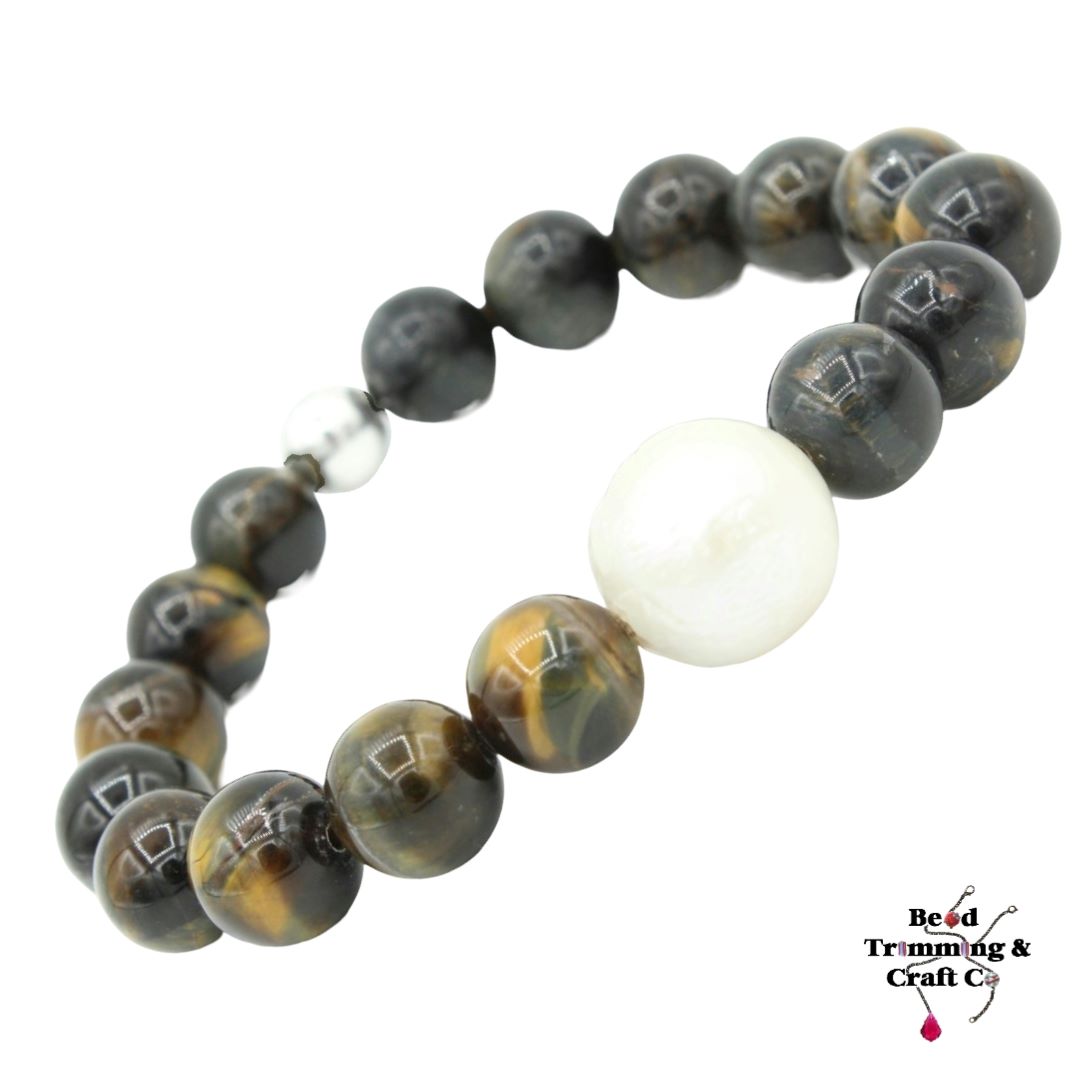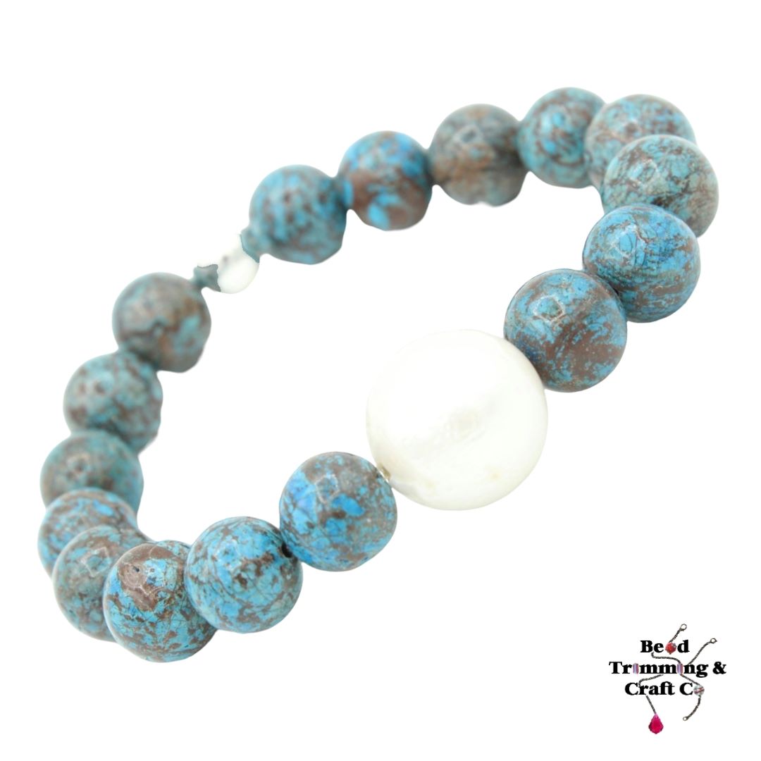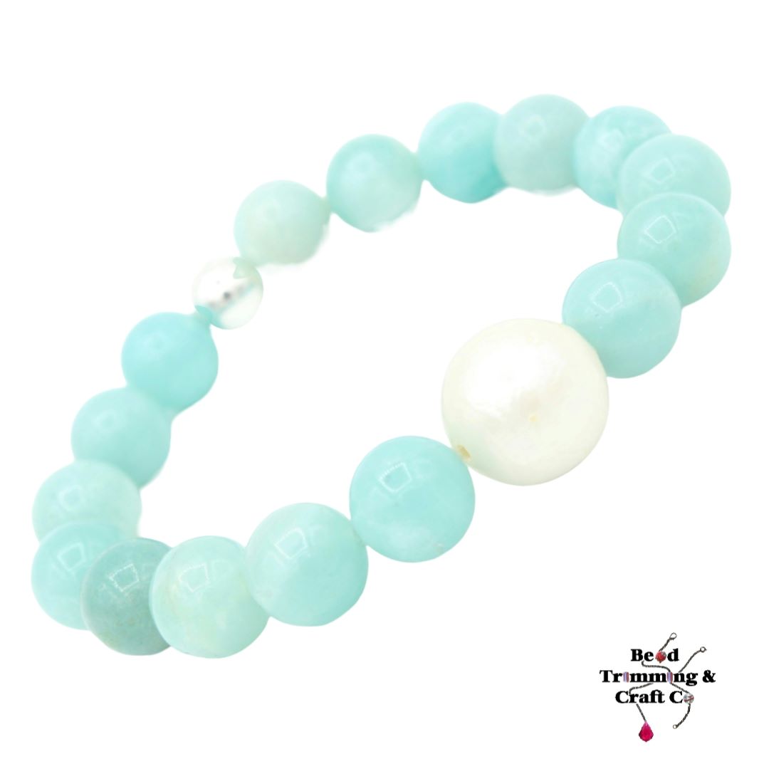 10mm gemstone beads. 15mm quality textured freshwater pearl. 8mm Sterling silver bead.