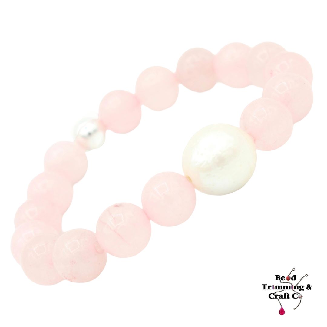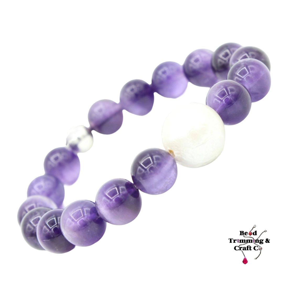 Gemstone / Freshwater Pearl / Sterling Silver – Stretch Bracelet.