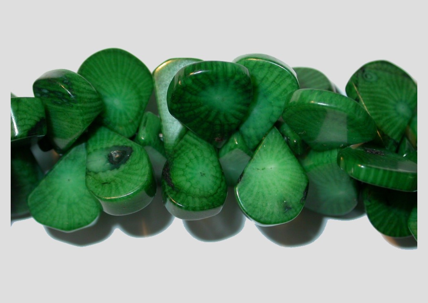 Green Coral Tear Drop. 40cm Strand. Dyed. 13 – 16mm Drop.
