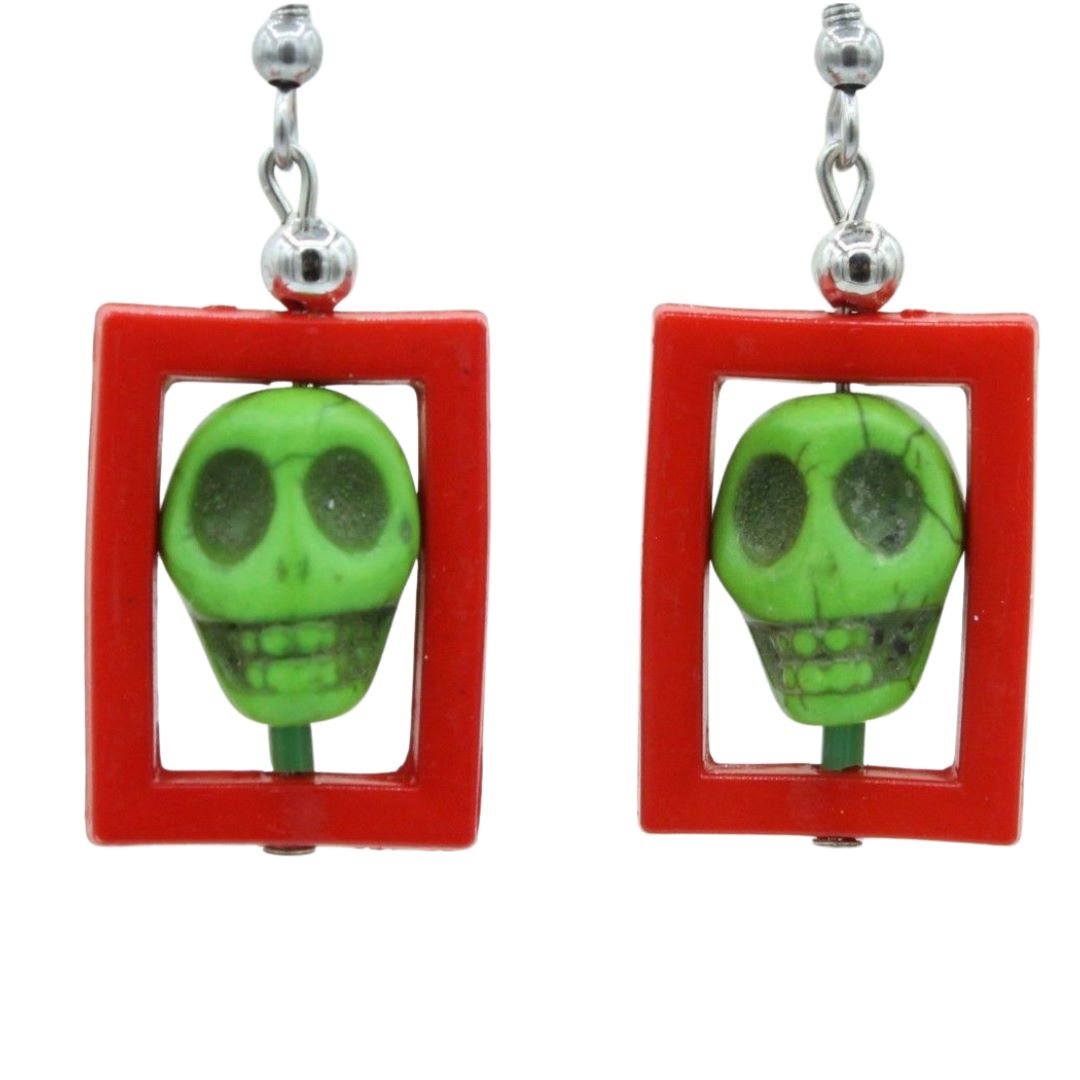 Halloween Earring – Picture Frame / Skull – Red / Green. 27 x 15mm. Earrings on Stainless Steel Ear Hooks. All components also available to purchase separately.