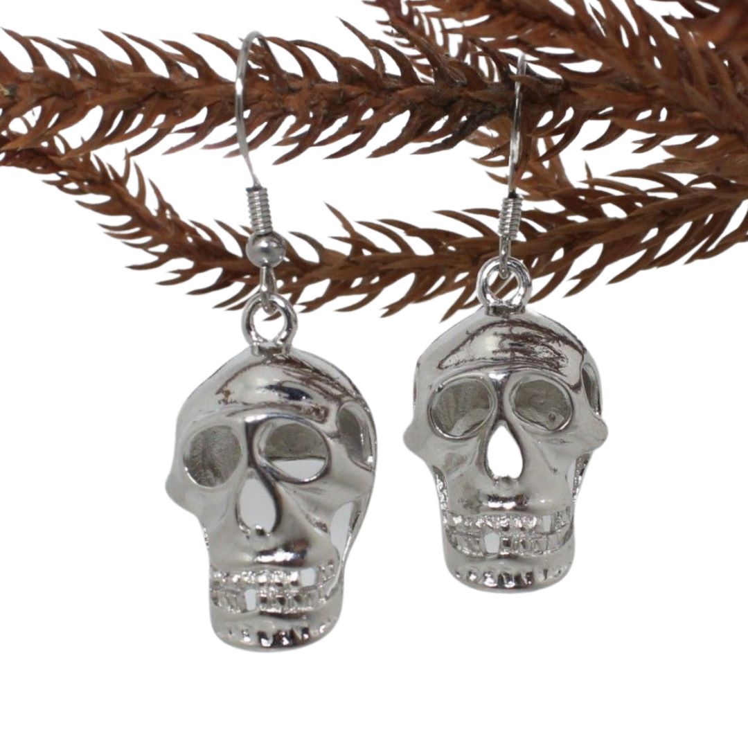 Halloween Skull Earring. 30mm metal skull – nickel free. Earrings on Stainless Steel Ear Hooks. All components are also available to purchase separately.