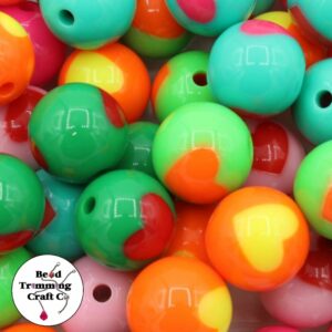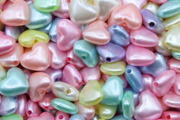 Heart – 14mm – Pearlised Mix. Plastic Bead. Heart shape. 14 x 12mm size.
