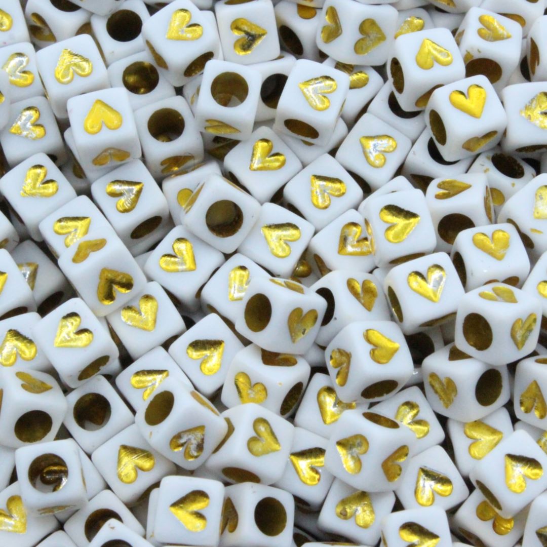 Heart Cube – 6mm – White / Gold.