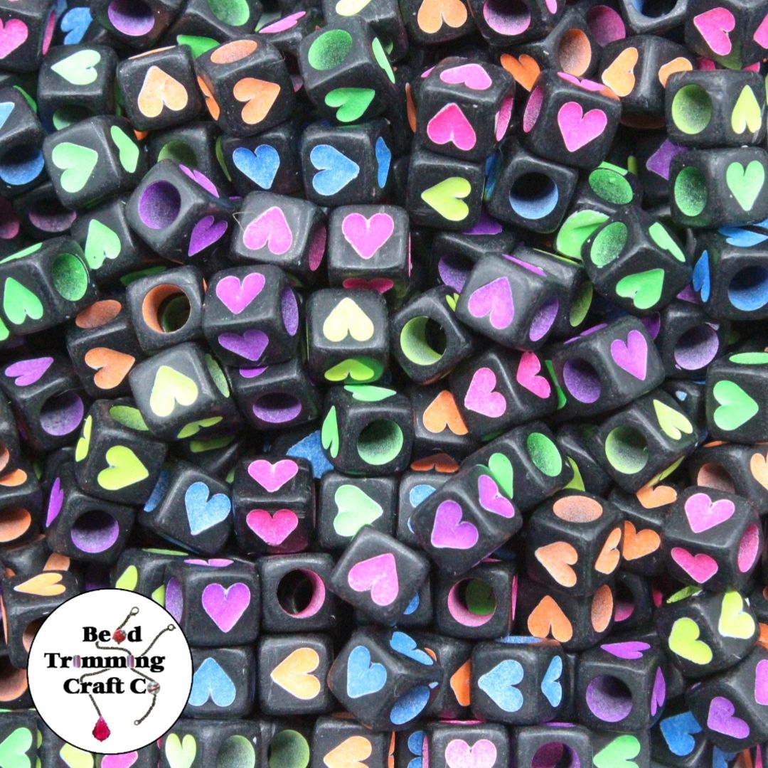 Heart Bead – Cube – 6mm – Multi / Black.