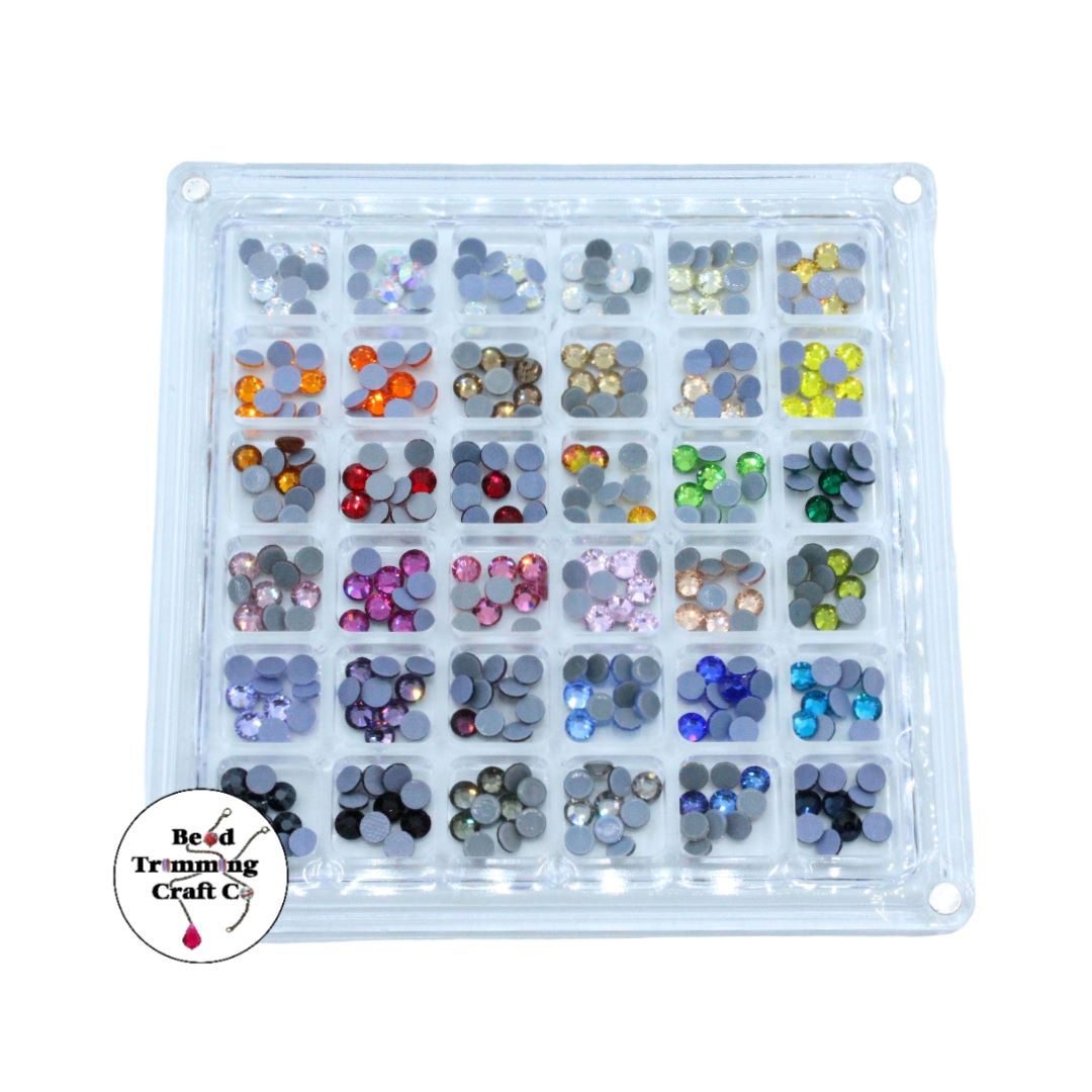 Introducing our Magnetic Display Box, featuring 36 vibrant colors. This versatile display box not only showcases your crystals beautifully but also offers a convenient design: the back lid can be easily removed, allowing you to take out the crystals and try them on your costumes, fabrics & more effortlessly. Perfect for designers and hobbyists alike, this display box ensures you have a rainbow of options at your fingertips.