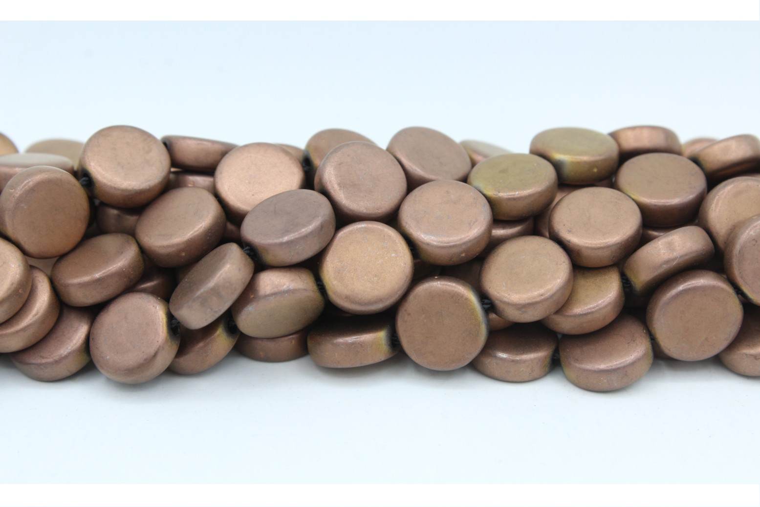Hematite – 10mm Coin Shape – Bronze – 40cm Strand. 10mm bead size. Plated Hematite.