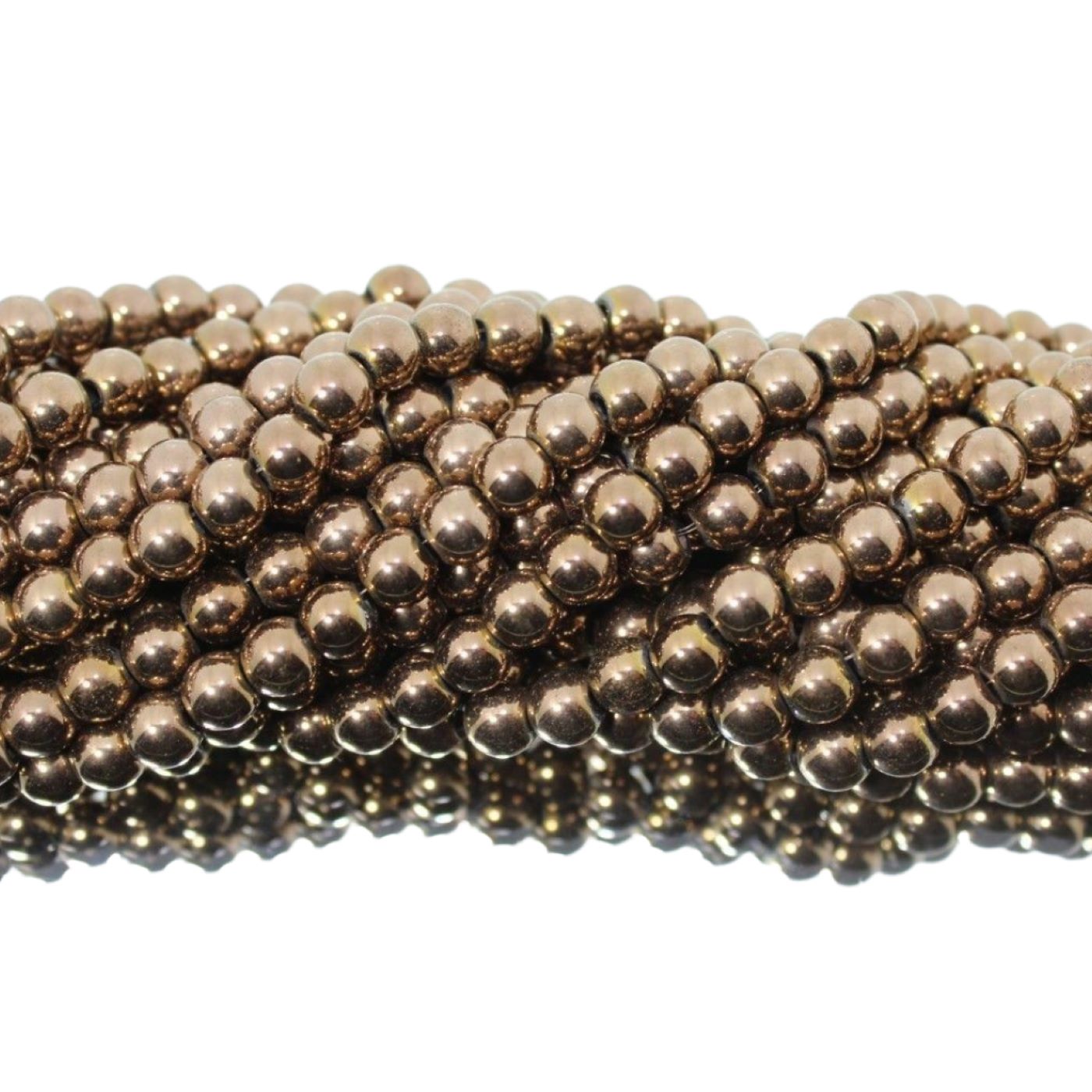 Hematite – 10mm Round – Bronze – 39cm Strand. 10mm bead size. Plated Hematite.