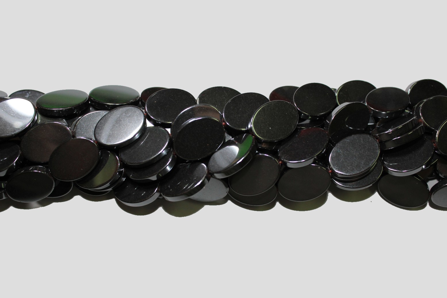 Hematite – 18 x 13mm Flat Oval – 40cm Strand. 18 x 13mm bead size. Please contact us to purchase individual pieces.