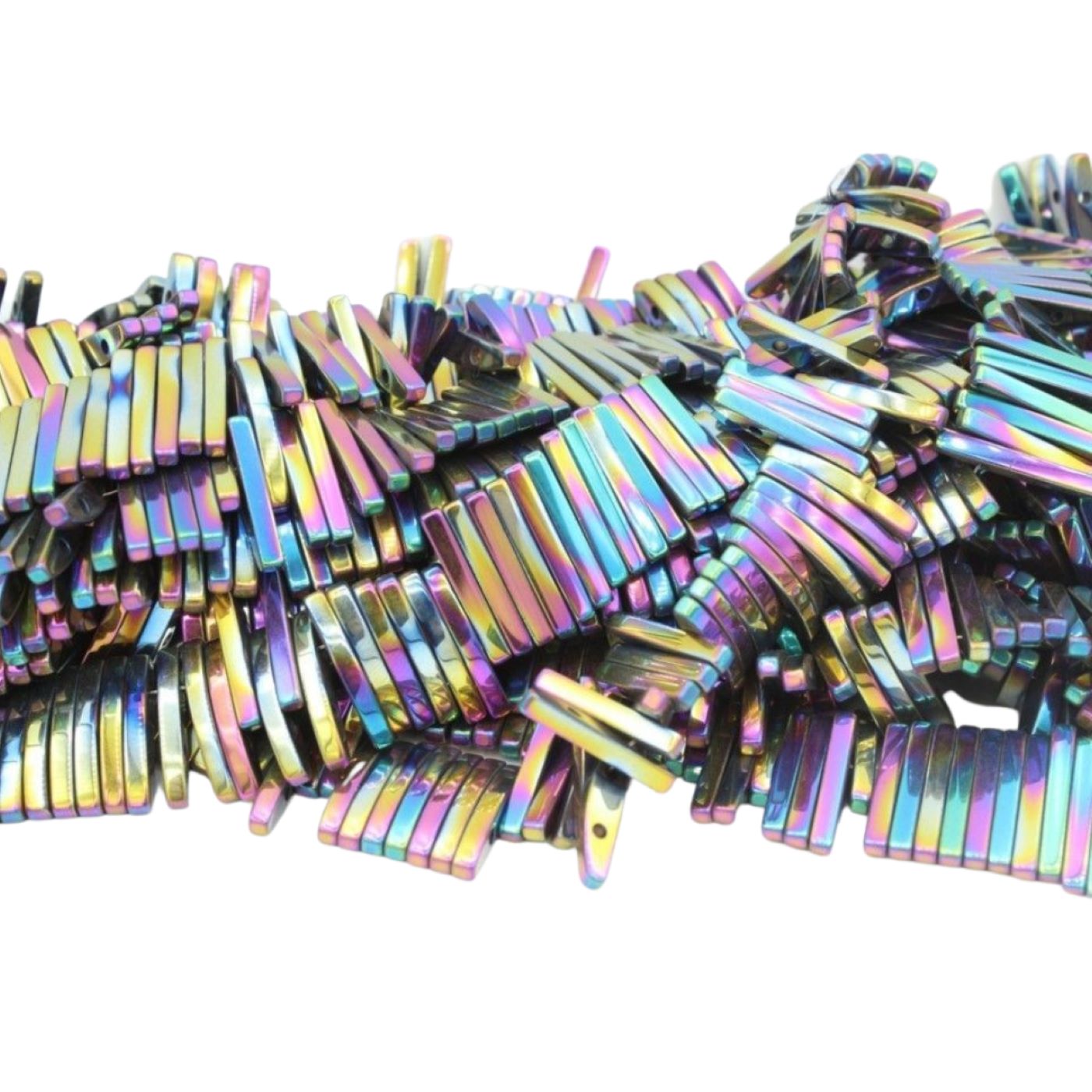 Hematite – 18mm 2 Hole Dome – Vitrail – 39cm Strand. 18 x 2mm bead size. 2 Holes. Plated Hematite.