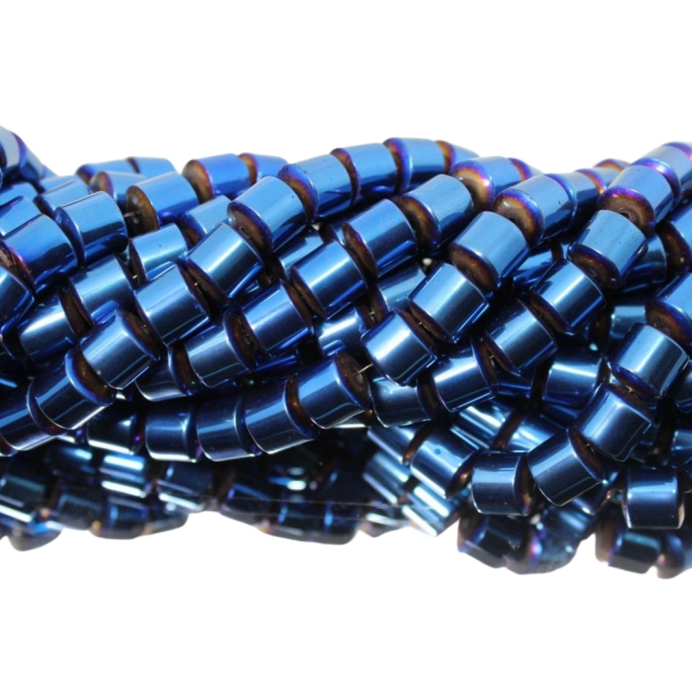 Hematite – 8mm Drum – Metallic Blue – 38cm Strand. 8 x 6mm bead size. Plated Hematite.