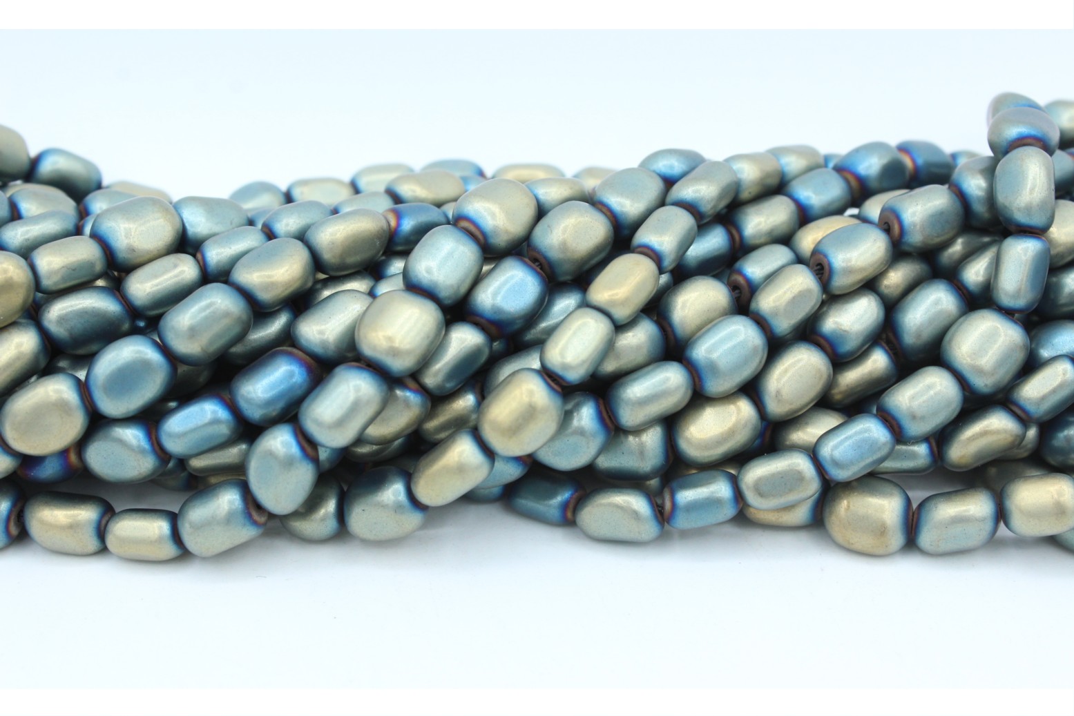Hematite – 8mm Nugget Shape – Matte Green Iris – 40cm Strand. 8 x 6mm bead size. Plated hematite.