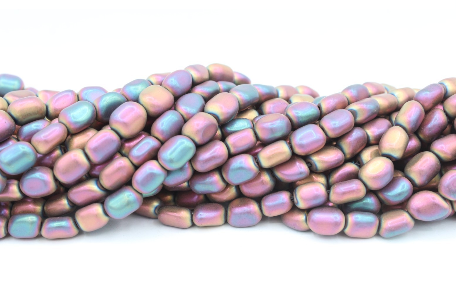 Hematite – 8mm Nugget Shape – Matte Lt Purple Iris – 40cm Strand. 8 x 6mm bead size. Plated hematite.