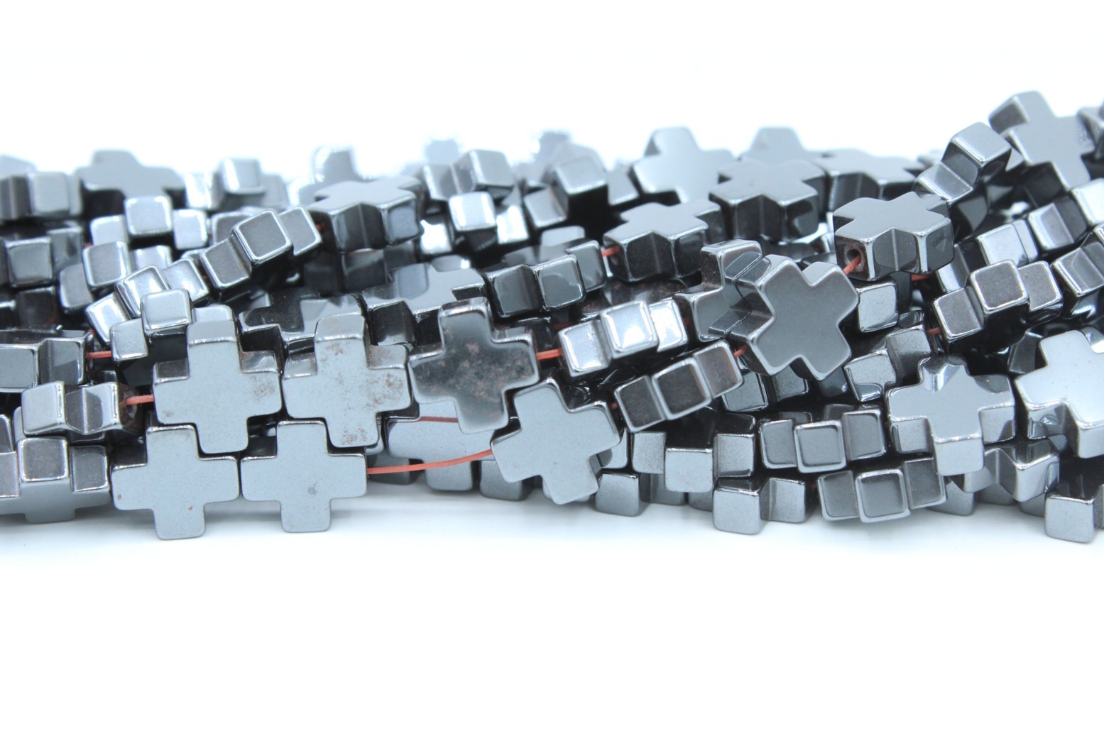 Hematite – Cross – 10mm – 40cm Strand. 10mm bead size.