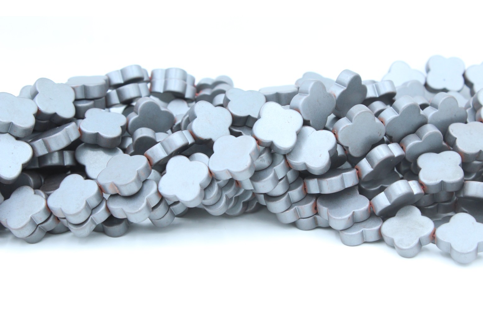 Hematite – Flat Flower – 12mm – 39cm Strand – Matte. 12mm bead size.