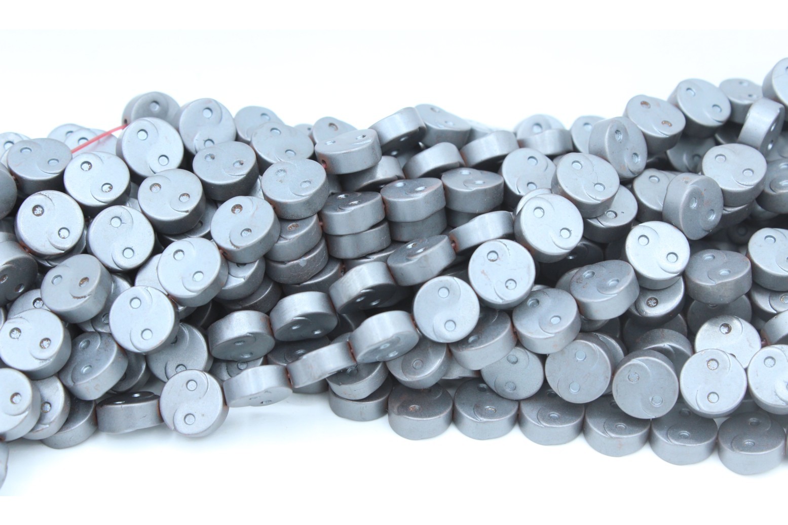 Hematite – Yin & Yang – 10mm – 39cm Strand – Matte. 10mm bead size.