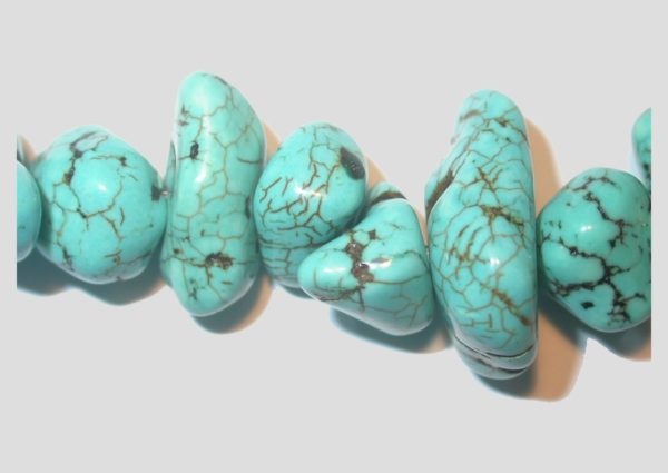 Howlite – 10 – 20mm Nugget – Dyed Blue – 42cm Strand. 10 – 20mm Nugget size. Please contact us to purchase individual pieces.