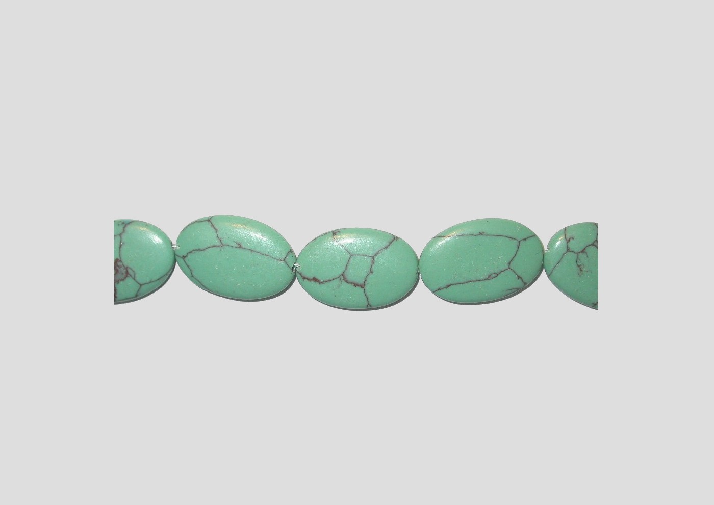 Howlite – 30 x 20mm Flat Oval – Dyed Blue – 38cm Strand. Please contact us to purchase individual pieces.