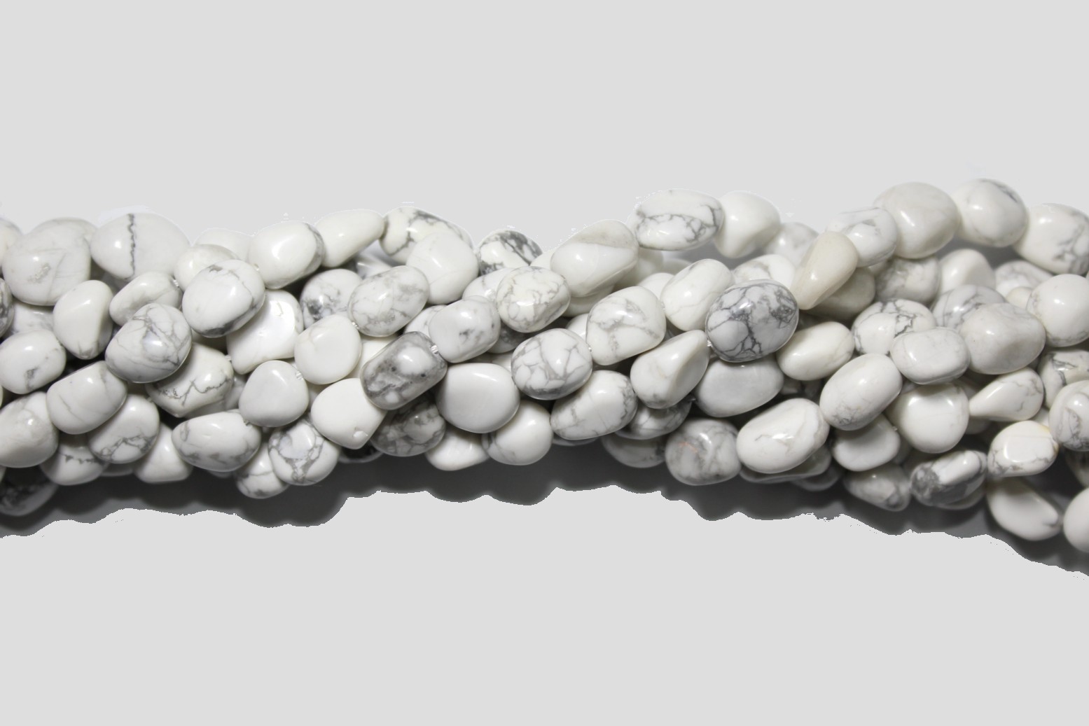 Howlite – 8-10mm Tumblestone – 39cm Strand. Approx 8 – 10mm bead size. Please contact us to purchase individual pieces.