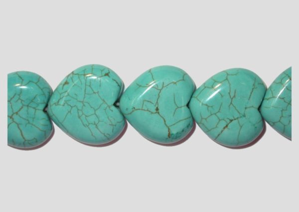 Howlite – Heart – 17mm – Blue – 40cm Strand. Dyed Howlite.
