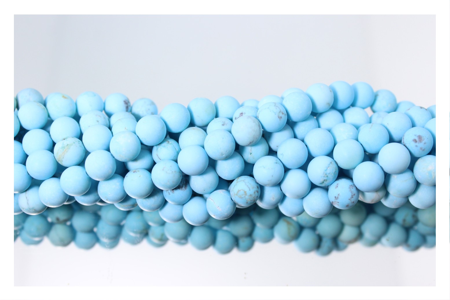 Howlite – Round – 10mm – Matte Blue – 39cm Strand. 10mm bead size. Natural Howlite. Dyed Colour.