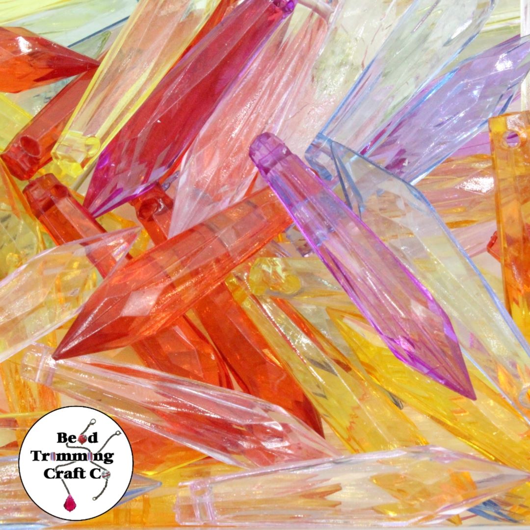 Icicle Drop – Faceted – 50mm – 50 Pieces – Mix Colour.