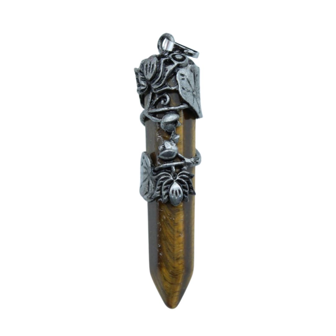 Icicle Pendant / Floral Vine / Tiger Eye – 55mm. 55 x 10mm Drop pendant size. Gun Metal floral vine colour.