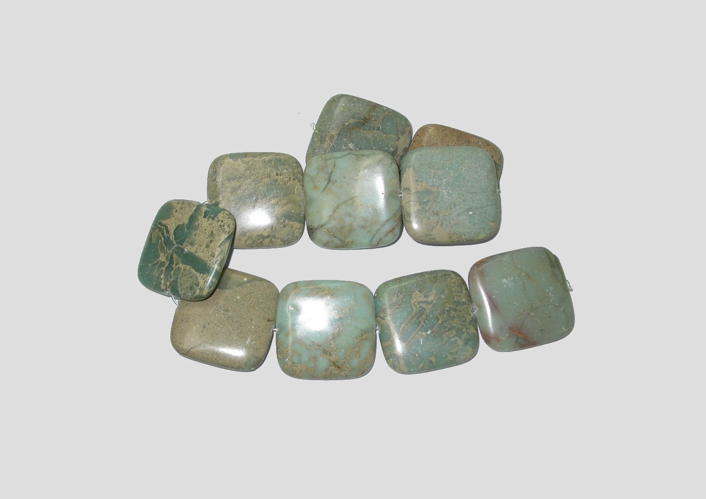 Impression Stone – Square – 40cm Strand. Flat Square. 40mm Bead size. Please contact us to purchase individual pieces. Semi