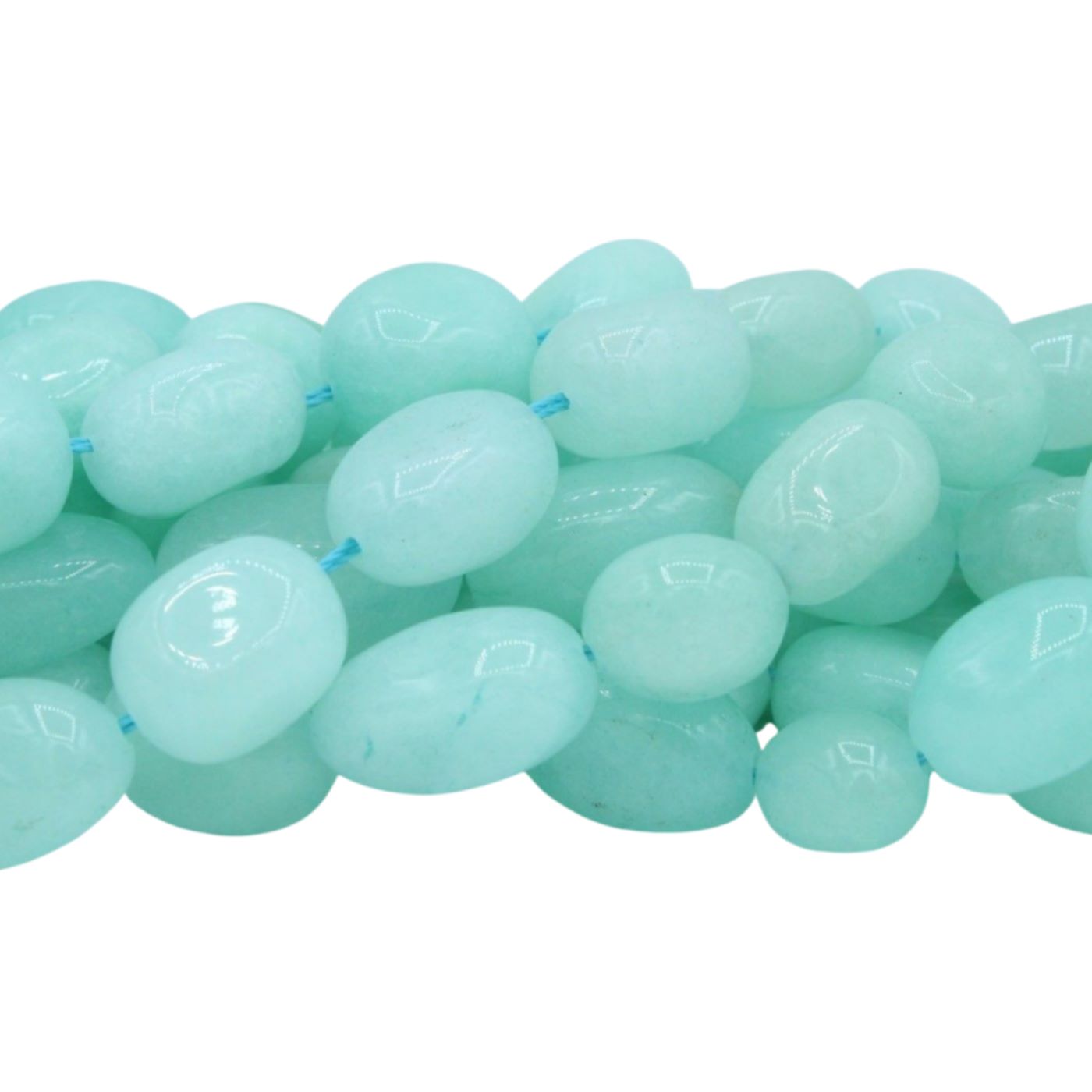 Jade – 15mm – Nugget – Light Blue – 39cm Strand. Approx 15 x 13mm bead size. Dyed Jade.
