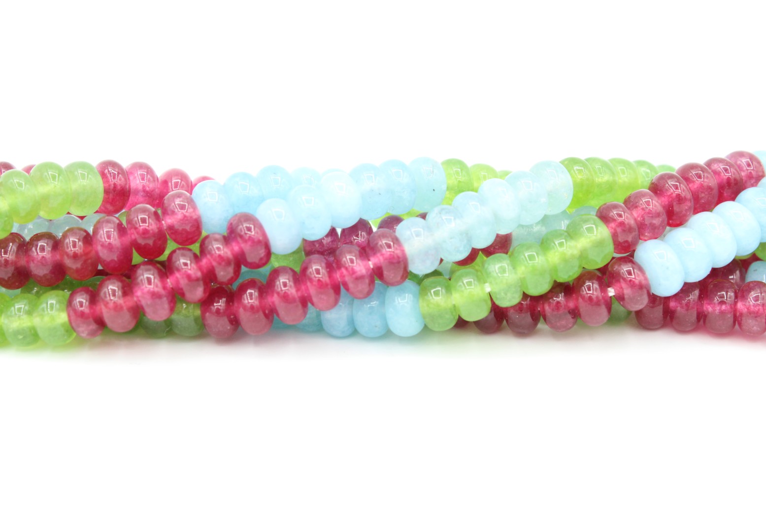 Jade – Rondelle – Mix Colour – Dyed – 6mm – 38cm Strand. Smooth. 6 x 4mm Bead size.