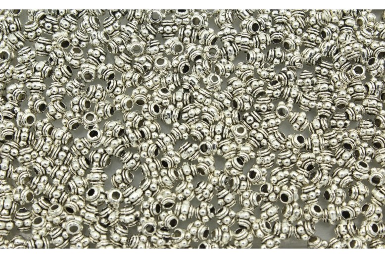 Lantern Bead – 4mm – Antique Silver. Quality product. Metal Bead. Plated.
