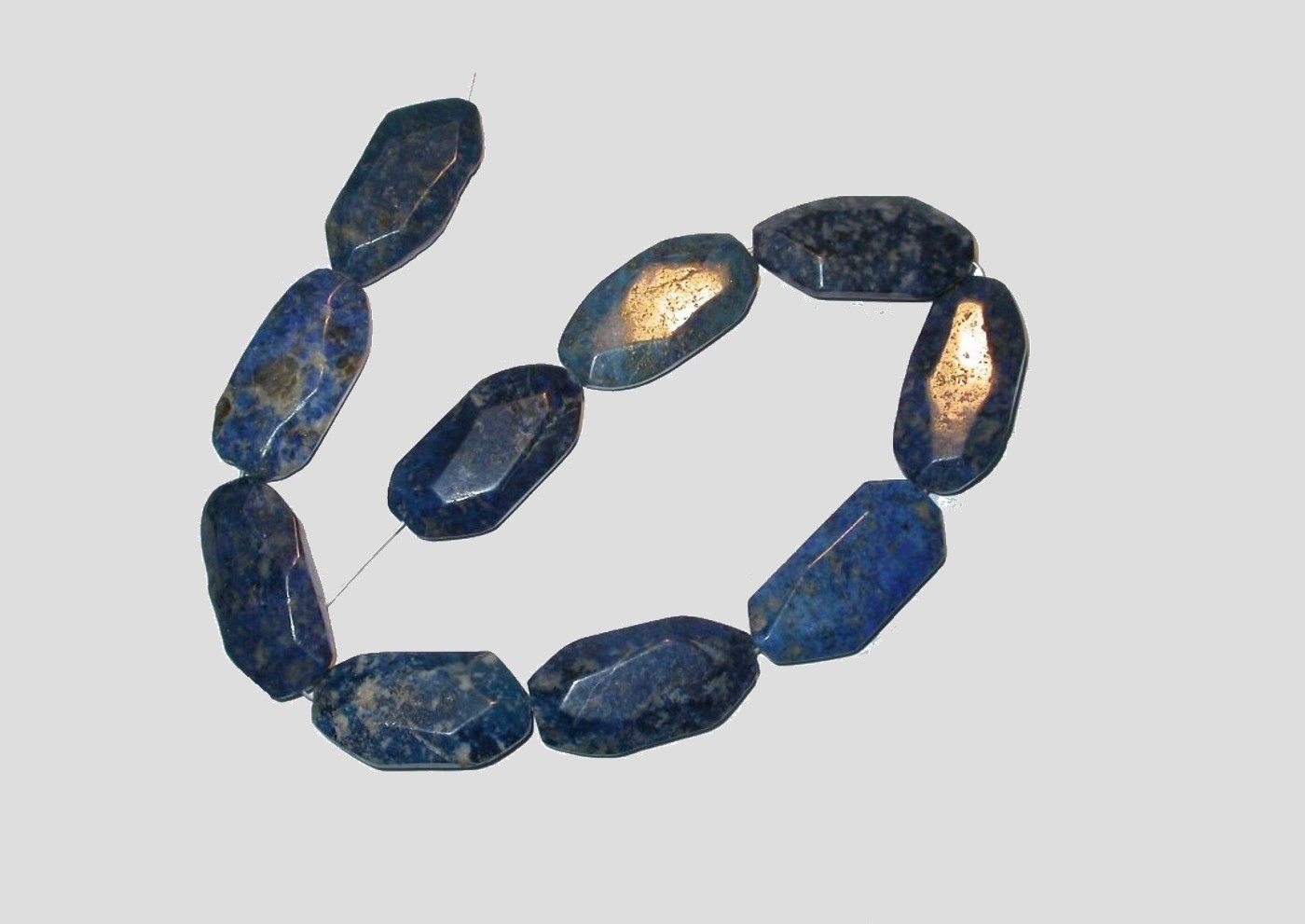 Lapis Faceted Slab – 40cm Strand. 40 x 20mm Bead size. Please contact us to purchase individual pieces.