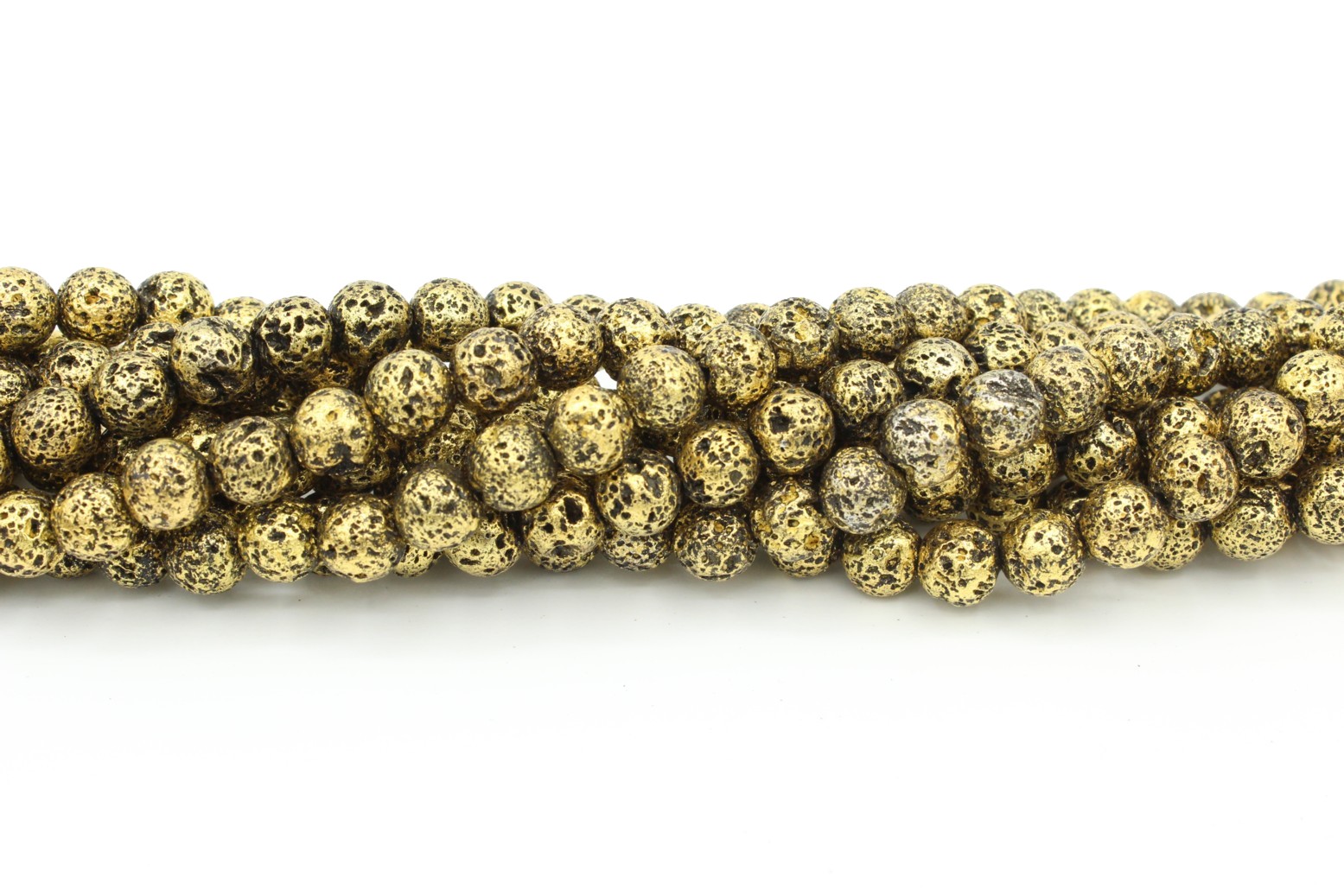 Lava Stone – Metallic Gold Plate – 10mm Round – 39cm Strand.
