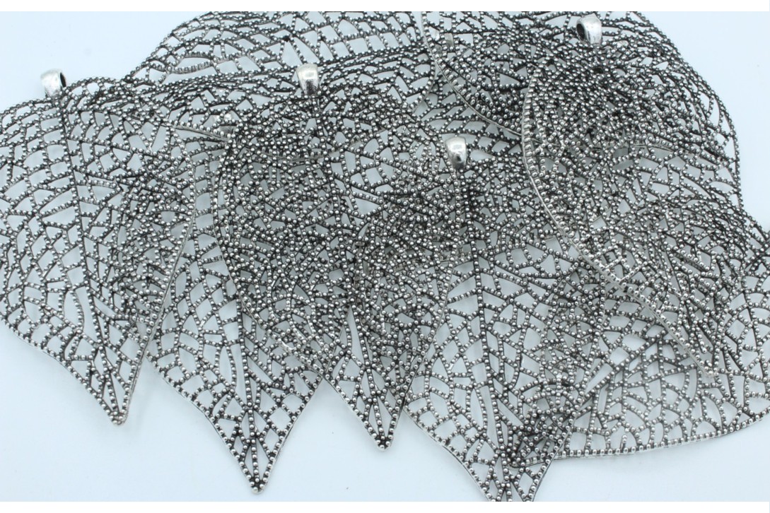 Leaf – 85 x 52mm – Antique Silver. Quality product. Metal Charm. Nickel Free. Plated.